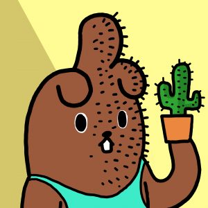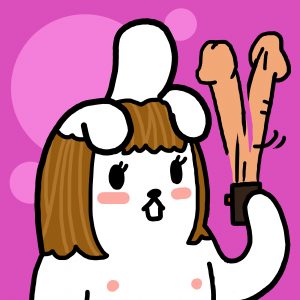A young male rabbit born with 3 ears with the middle ear stand up to show his attitude that against the world social around him. He’d never say the word “fuck” caused his ear always represents that word all the time. Using all the bad words is not his style of talking, but talking bad about the world is his way of living.